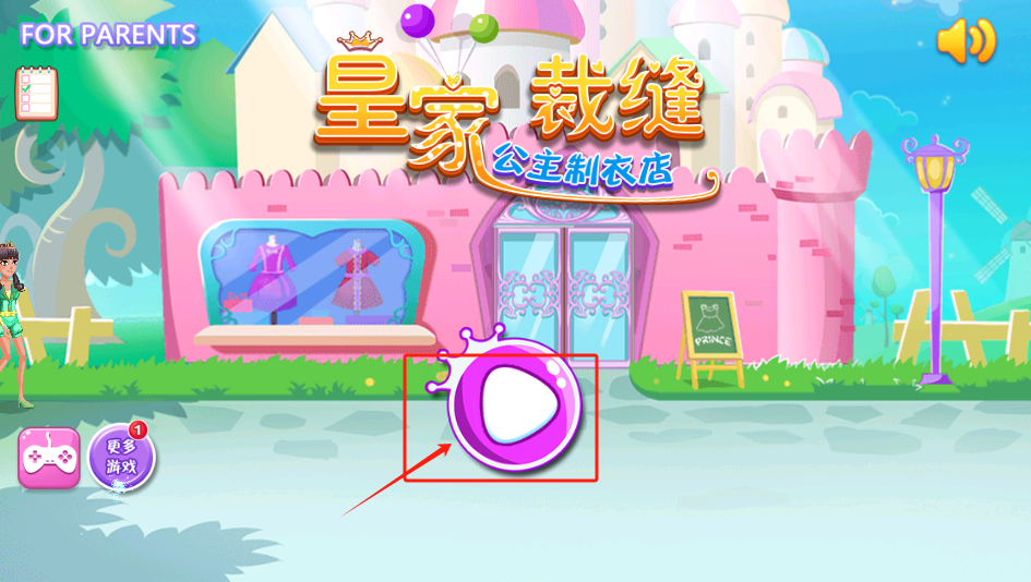 1、点中间紫色播放按钮开始游戏,左上角FOR PARENTS是家长设置。