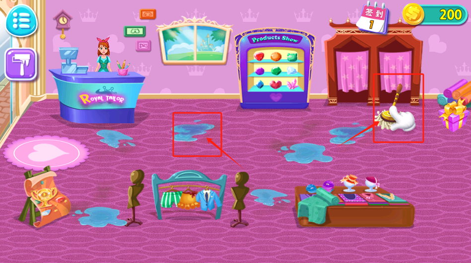 2、用红框里的清洁工具擦掉地上的水渍,保持店铺整洁。