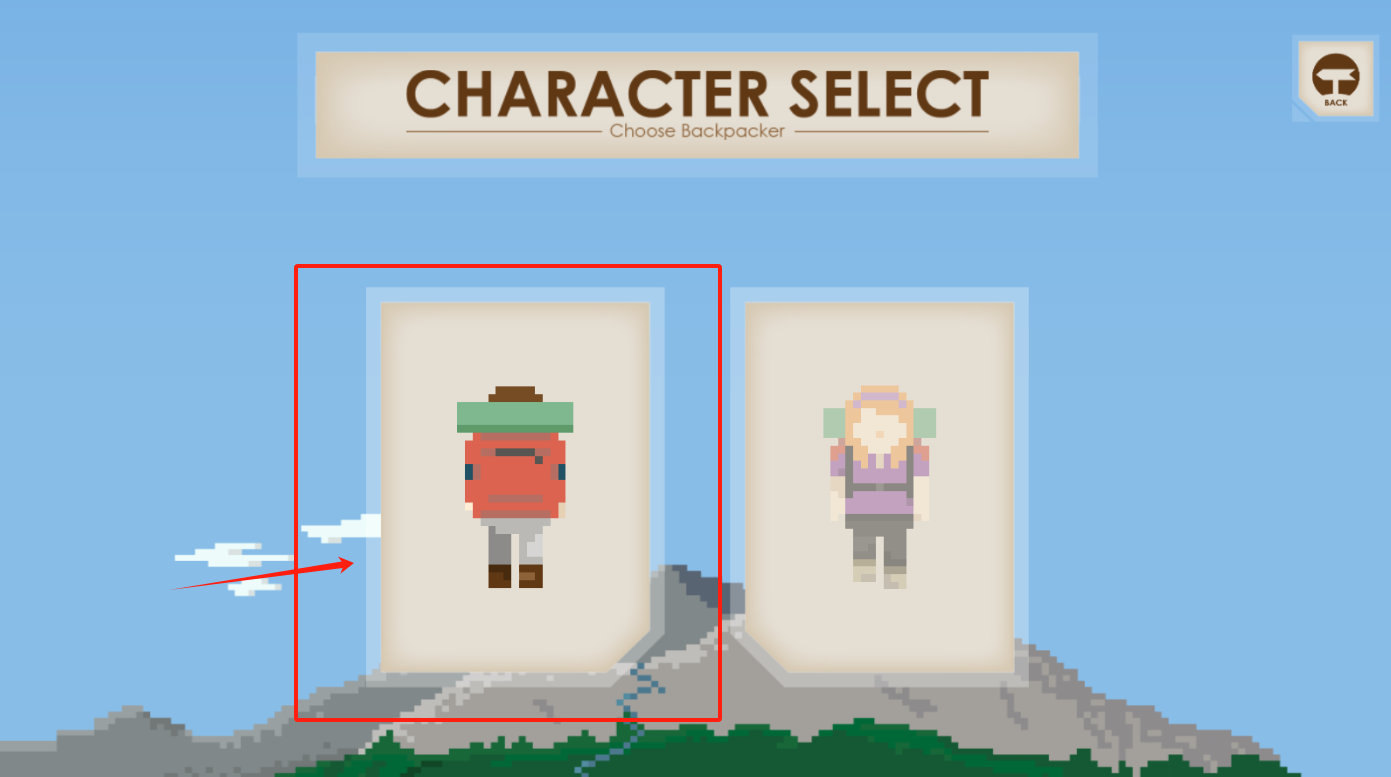 2、选左边戴绿帽的背包客,或者右边扎马尾的角色,点BACK能返回。