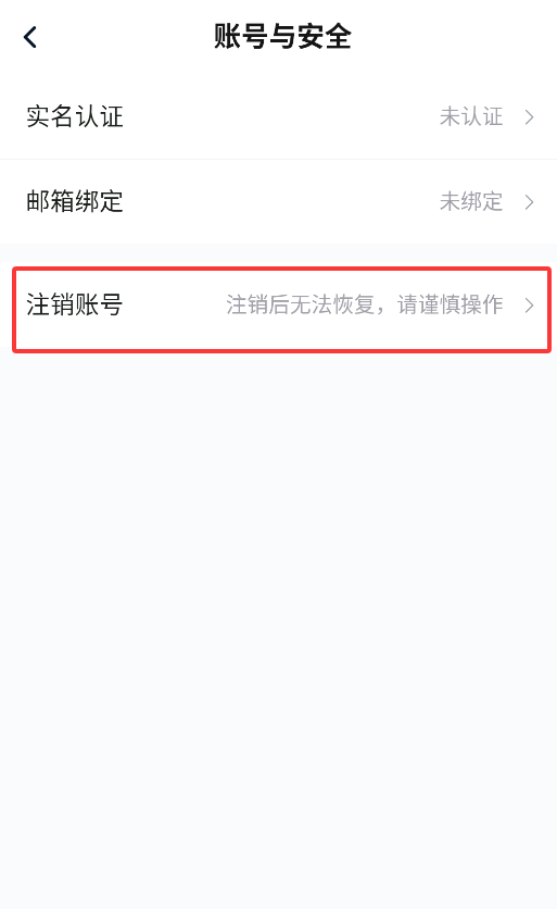 3、点击注销账户后需二次确认,阅读提示后输入验证码完成最终注销(注:将清空所有数据且不可恢复)。