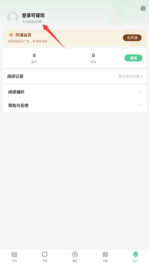 1、进入悠然免费阅读APP后,点击底部导航栏"我的"图标,进入账户管理页面。