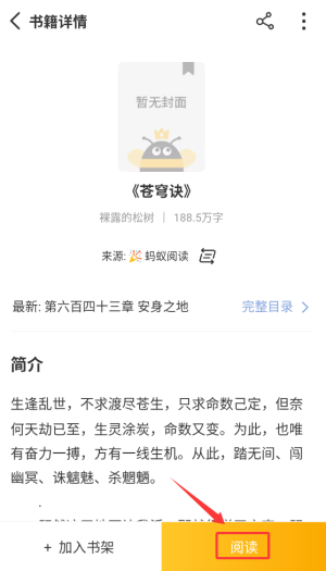 3、在书籍详情页面点击"阅读"按钮,即可浏览完整的小说章节内容。