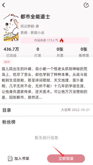 3、在书籍详情页直接点击"立即阅读"按钮,即可开始浏览完整章节内容。