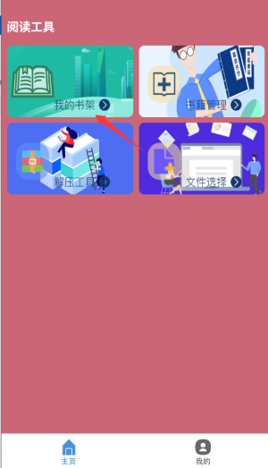 1、进入山丘夜猫小说APP后,点击底部导航栏"我的书架"图标,进入个人书库管理页面。