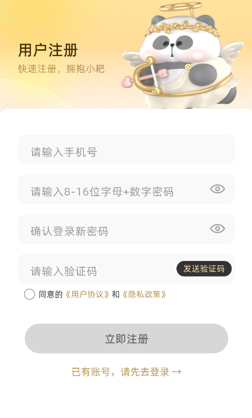 1、启动APP后,在登录页面点击“新用户注册”按钮,进入账号创建流程。