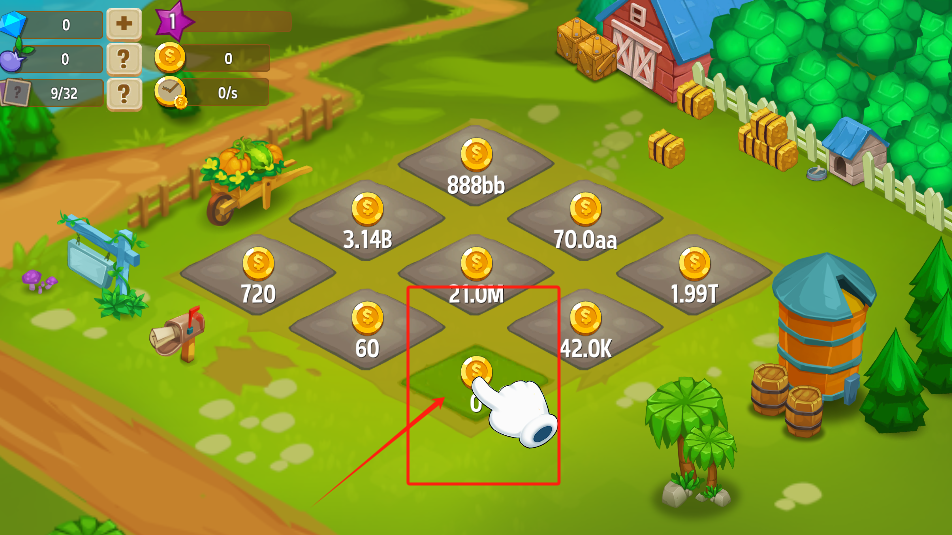 1、点红圈里的金币收钱,数字会加到左上角的总金额里。