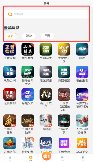 2、浏览可交易账号列表,根据等级、装备等条件筛选符合需求的游戏账号。