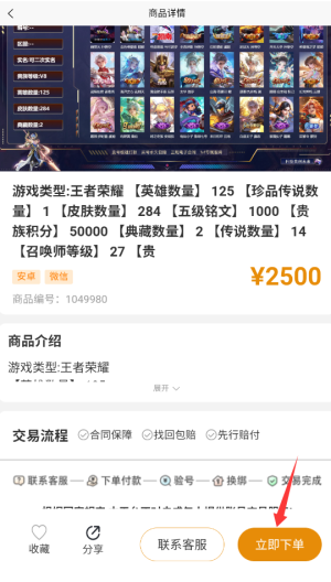 3、查看账号详细信息后,点击右下角"立即下单"按钮完成购买流程。