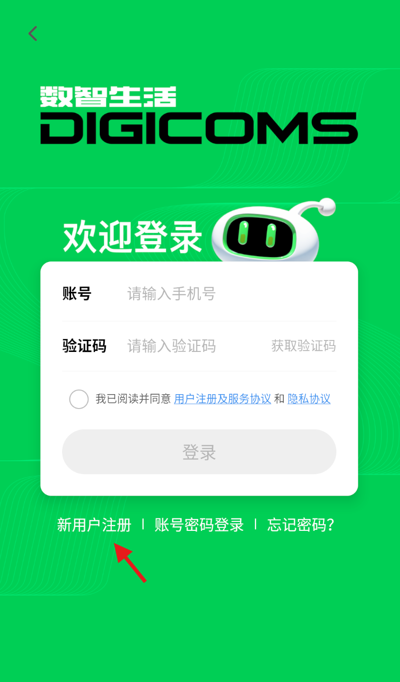 3、跳转至登录注册界面,于页面明显位置,点击 “新用户注册” 选项进入注册流程。