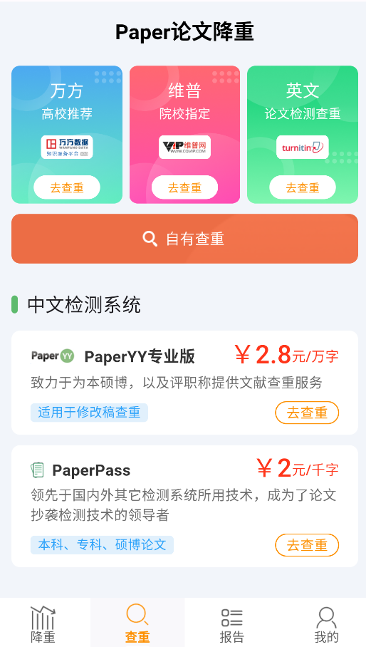 3、查重服务覆盖知网、维普等主流数据库,检测结果附带相似文献对比和引用规范指导,支持多次免费复检。