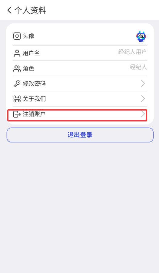 2、在账户管理选项中找到"注销账户"按钮,点击进入注销流程。