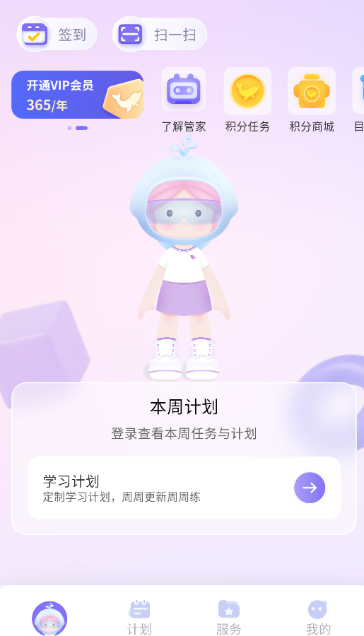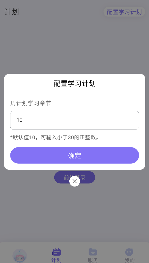 2、进入计划管理页面,可以自定义创建学习目标,通过简单设置每日/每周任务量来生成个性化学习方案。