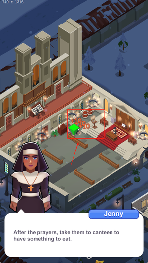 1、进入游戏后可选择不同功能区域进行建设,每个区域都对应不同的作用,如祈祷室、忏悔室、食堂等。