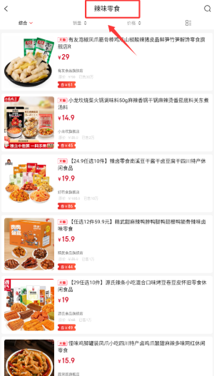 2、选择需要的商品类别如零食、日用品等,进入细分商品页面。