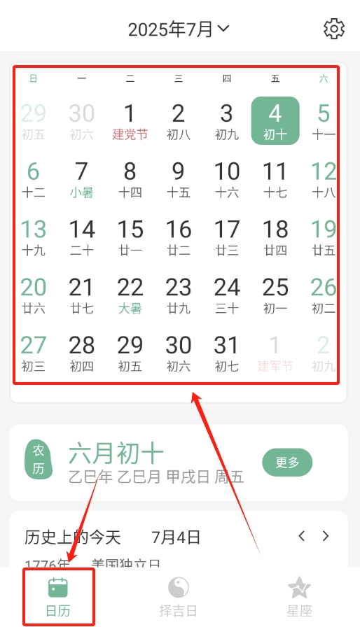 1、打开轻和日历软件,首页就能直接查看公历、农历等日历信息。