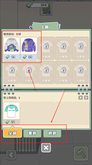 2、将衣服上架到店铺中出售,向顾客赚取金币。