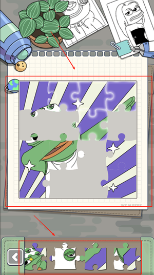 1、通过拼图玩法获得表情包和插画,同时获得与图案对应的DIY衣服。