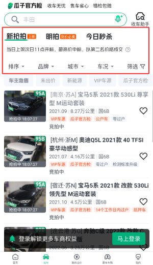3、独创"透明竞拍"机制,实时显示最高出价与车主心理价位差值。支持一口价直购和竞价两种交易模式,满足不同需求。