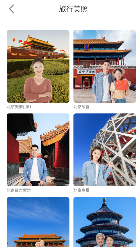 2、选择"旅行美拍"模式后,可从全球热门景点背景库中挑选心仪的风景模板。