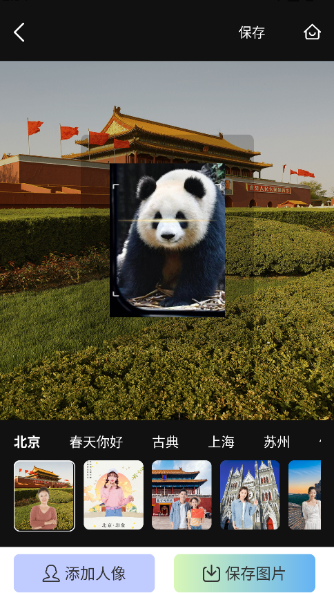 3、导入个人照片智能合成,系统会自动优化人物与背景的融合效果,一键生成逼真旅行大片。
