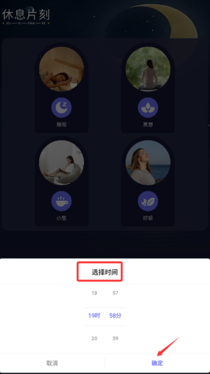 1、启动声贝陪伴睡眠APP后,在首页点击"休息"选项,进入睡眠功能页面。
