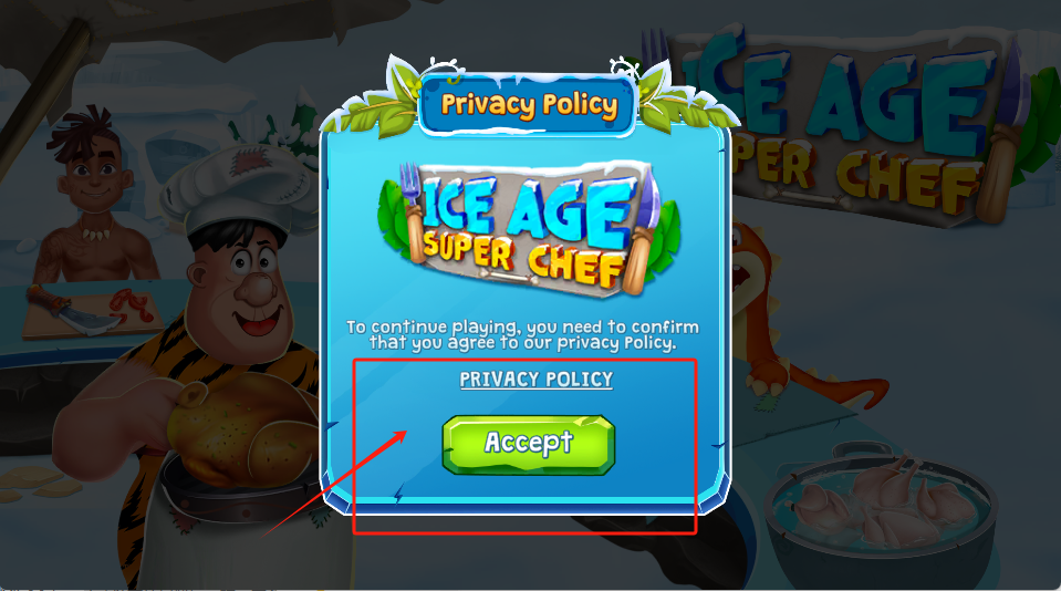 1、点绿色大方框Accept按钮同意隐私政策,箭头指的地方就是按钮位置。