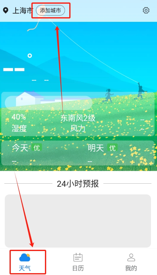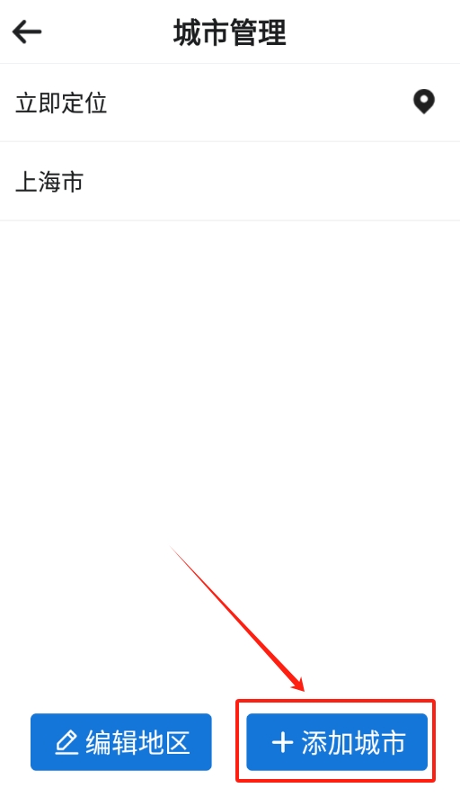 1、打开软件直接看首页,左上角有个添加城市按钮,点它就能开始操作了。