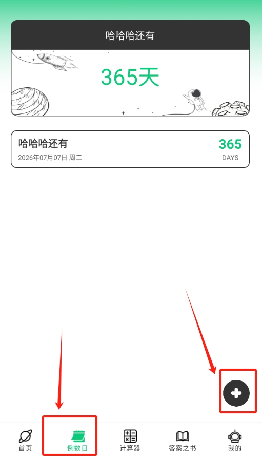 2、进入倒数日页面后,同样点右下角加号,输入事件名称和日期就能添加倒数日提醒。