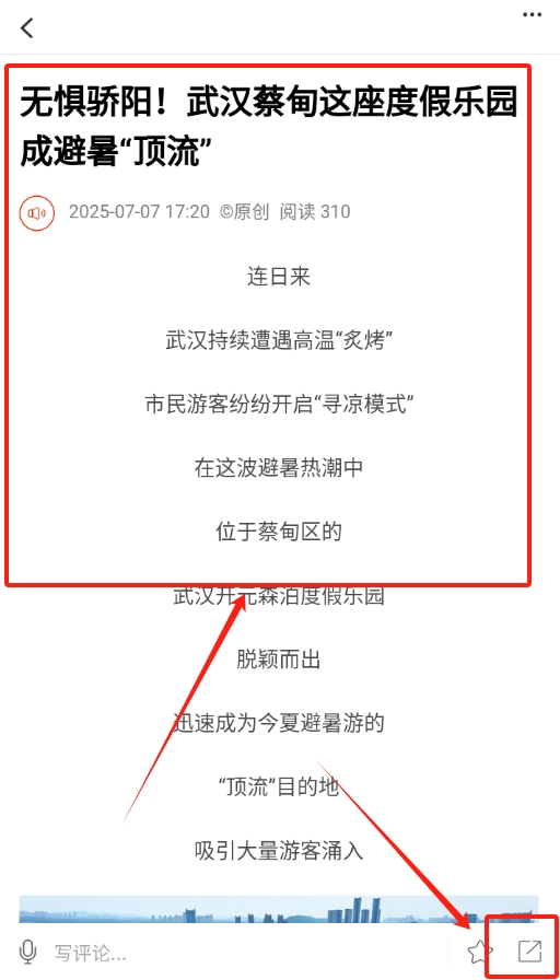 2、要是想把这篇文章分享出去,就找到页面右下角的转发图标,点一下这个图标。