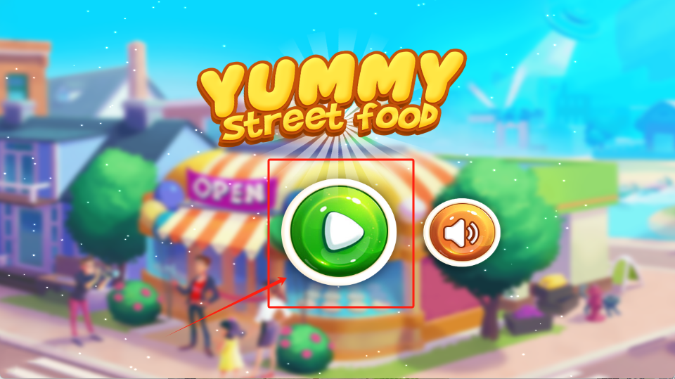 1、点击游戏启动界面绿色大播放按钮,即可开始经营你的街头美食店。