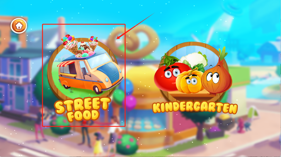 2、点击左侧冰淇淋餐车开始制作甜品,或点击右侧蔬菜篮准备幼儿园餐点。