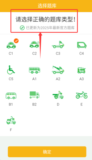 2、车型选择模块支持C1、C2等6种常见驾照类型,自动匹配对应考试题库与教学资源。