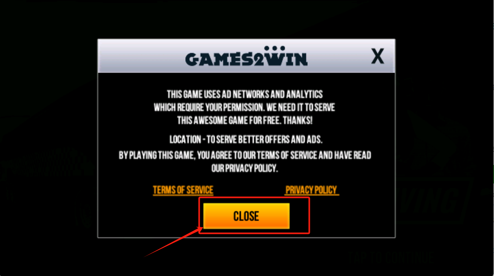 1、点击黄色CLOSE按钮关闭游戏说明弹窗,继续游戏体验。