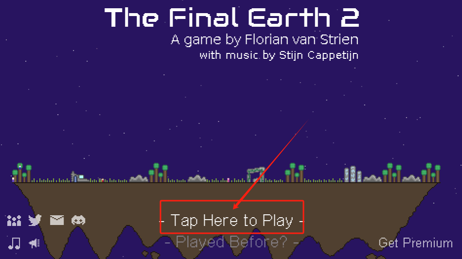 1、点击屏幕中间绿色箭头开始游戏,还能查看开发者信息和音乐社交选项。