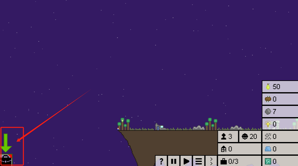 2、看右下角资源面板,收集材料,点击红框图标升级建筑。
