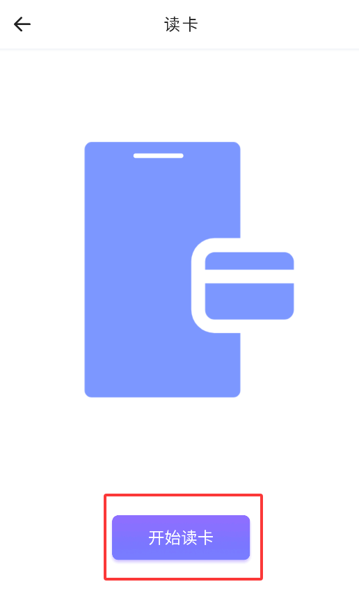 3、点击"开始读卡"按钮后,将卡片紧贴手机NFC感应区,听到提示音即完成读取。