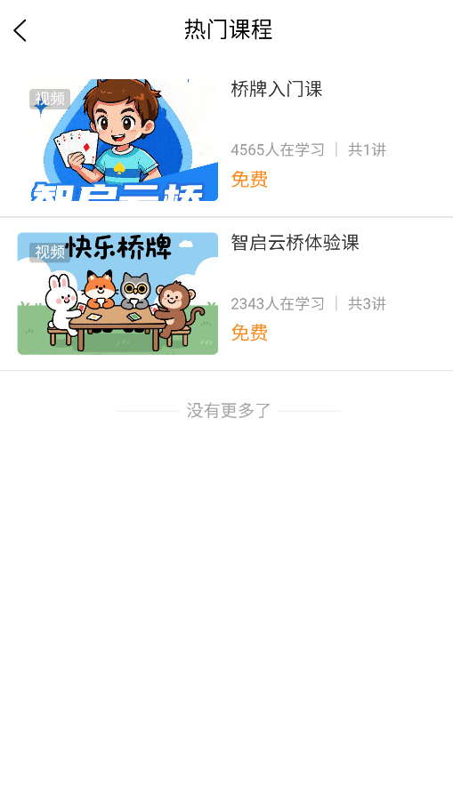 2、进入课程中心选择"桥牌入门"或"云桥实战"等系列课程进行系统化学习。