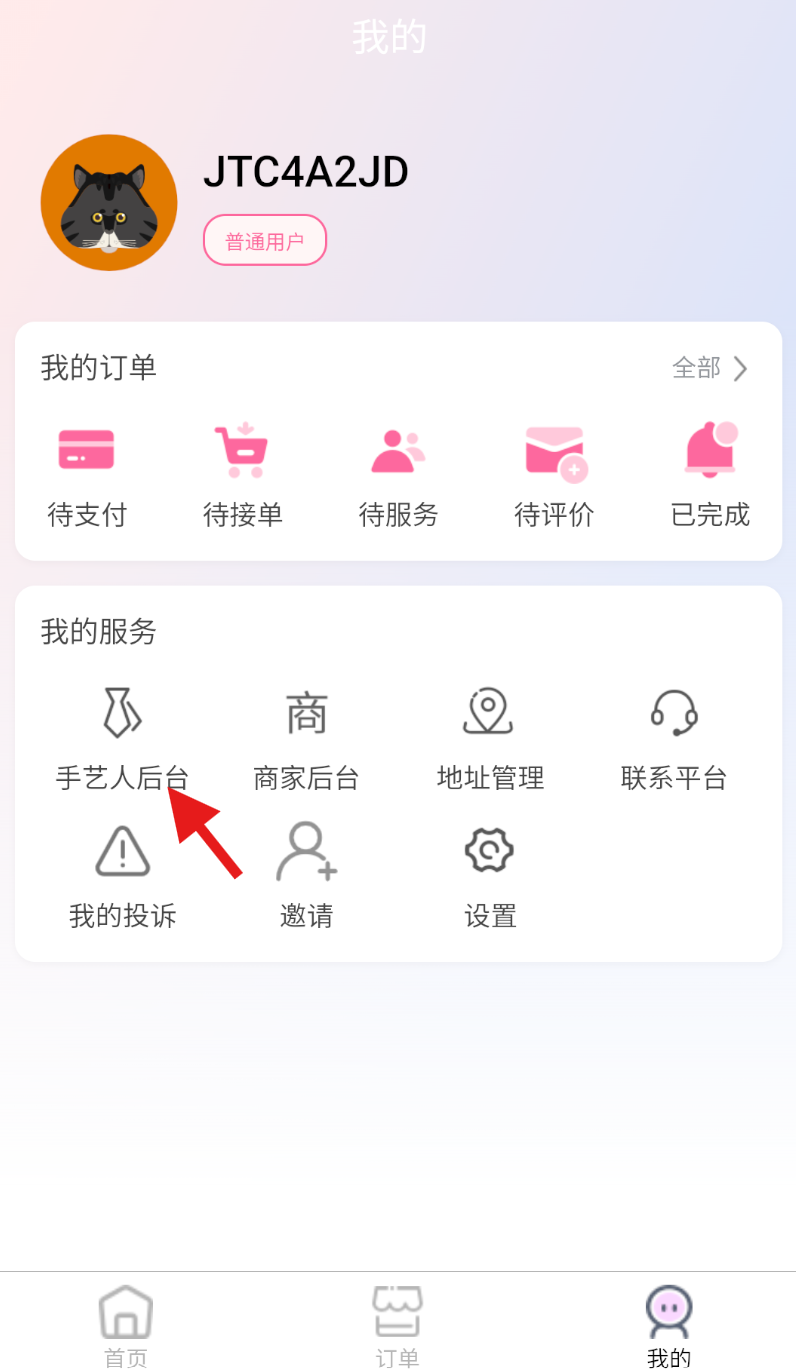 2、在 “我的” 页面里,找到 “手艺人后台” 选项并点击,进入手艺人入驻的相关操作界面。