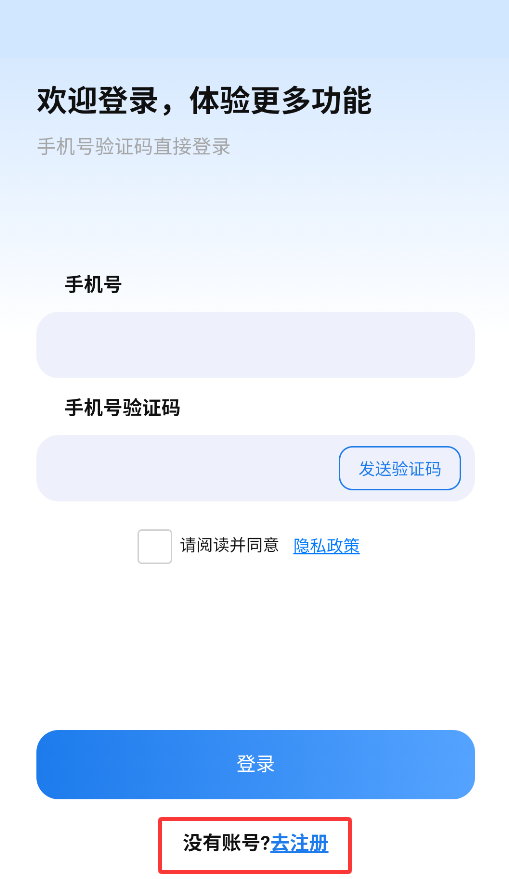 1、启动应用后,在登录页面下方找到并点击"立即注册"按钮进入注册流程。