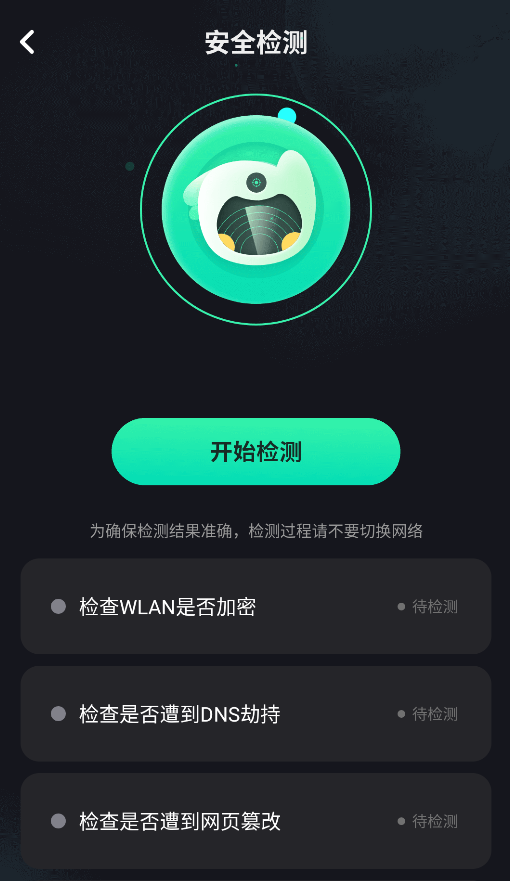 2、进入安全检测页面后,点击"立即检测"按钮,系统会自动扫描当前网络环境风险。