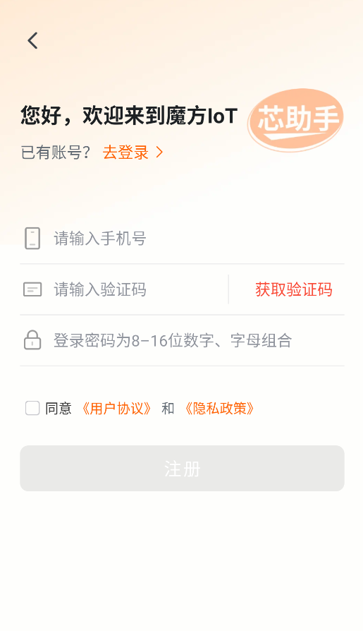 2、按照提示输入有效手机号,获取并填写短信验证码,设置6-20位密码完成注册。