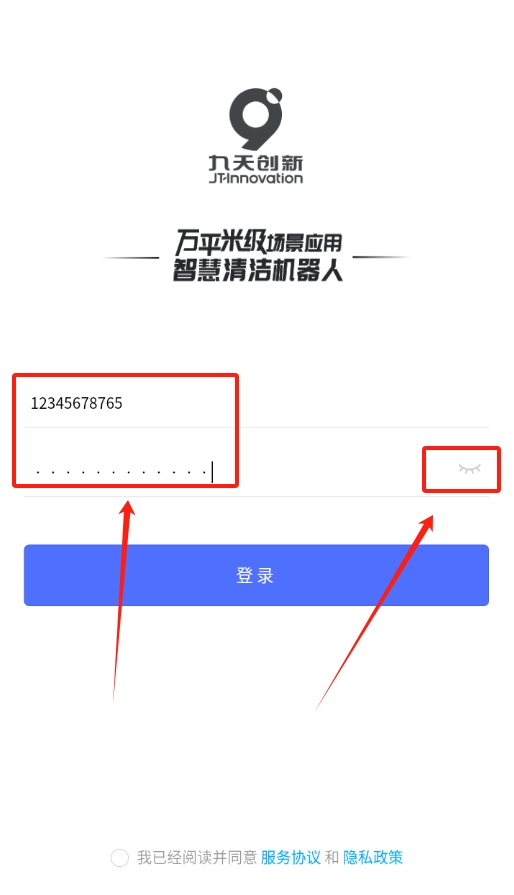3、在登录页面输入自己的手机号和设置的密码,输完后点击密码右侧那个闭着的小眼睛图标。
