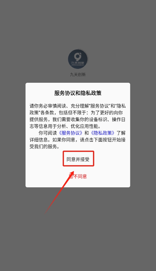 2、打开软件后,会出现软件协议内容,仔细看看没什么问题就点击同意,这样才能继续下一步操作进入登录页面。