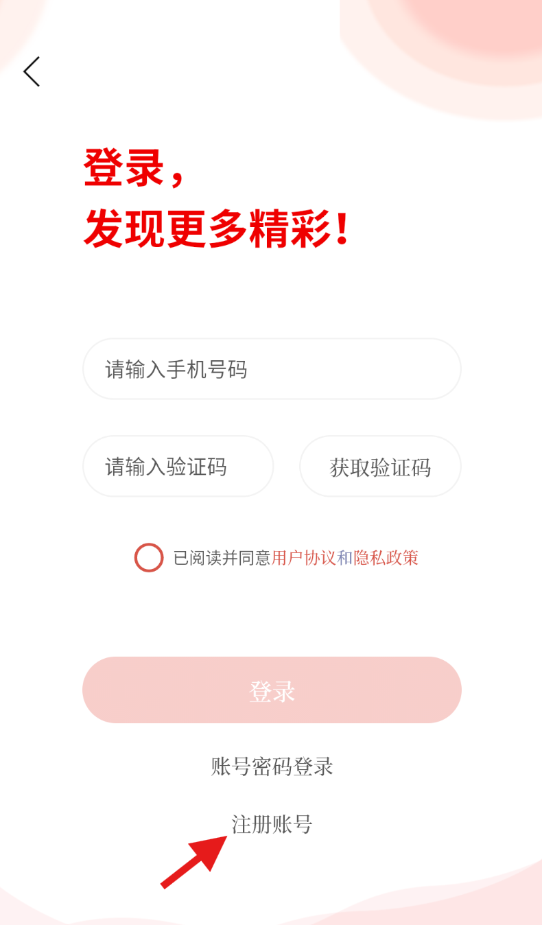 3、在登录界面的最下方,找到 “注册账号” 选项并点击,进入账号注册的信息填写页面。