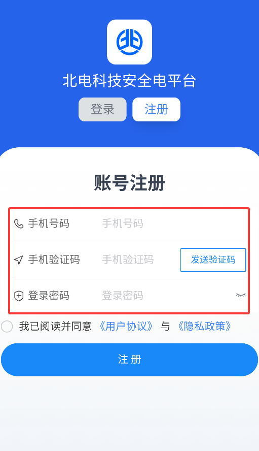 3、完成注册后返回登录界面,使用已认证的手机号和设置的密码即可正常登录系统。