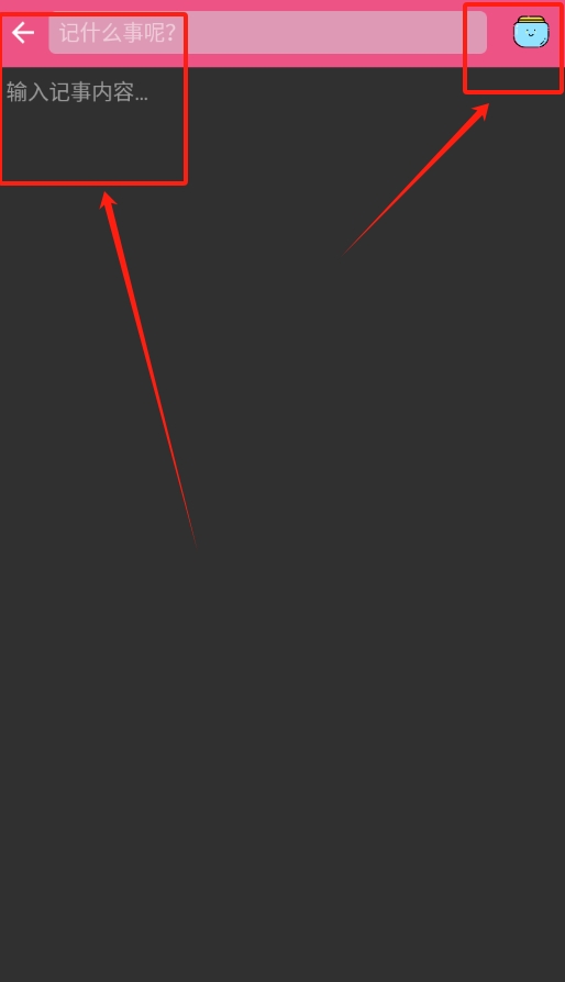 4、在编辑页面输入标题和内容,确认没问题后,点击右上角的蓝色小图标,这样刚才输入的内容就保存好了。