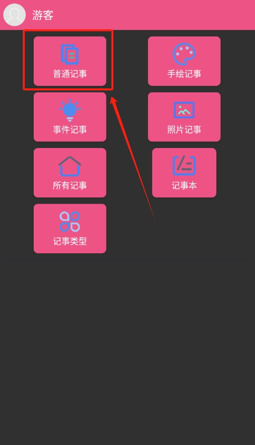 3、进入软件后,在页面上找到普通记事本选项,选择并点击它,就能进入普通记事的编辑页面,准备记录内容。