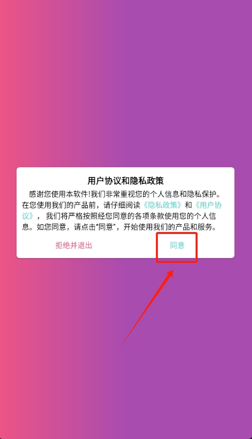 2、打开后会看到软件协议,大致浏览一下内容,点一下同意,这是必要的步骤,继续往下使用软件的各种功能。