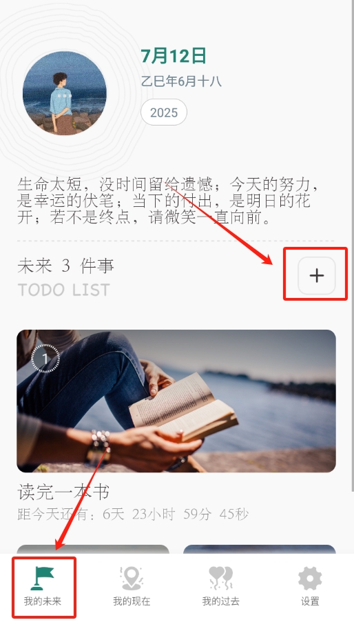 3、进入软件后,找到我的未来页面,在这个页面上能看到加号,点击它就能添加新的目标计划,很容易找到。