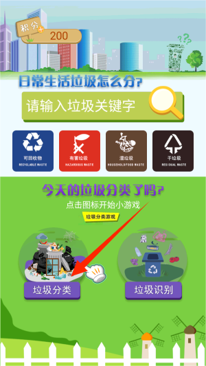2、在环保知识学习区,设有"垃圾分类"和"垃圾识别"两种模式供自由选择。